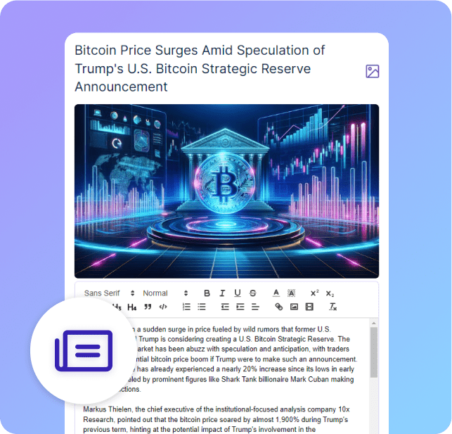 Quickly produce high-quality news articles to keep your readers updated and engaged without the manual effort.
